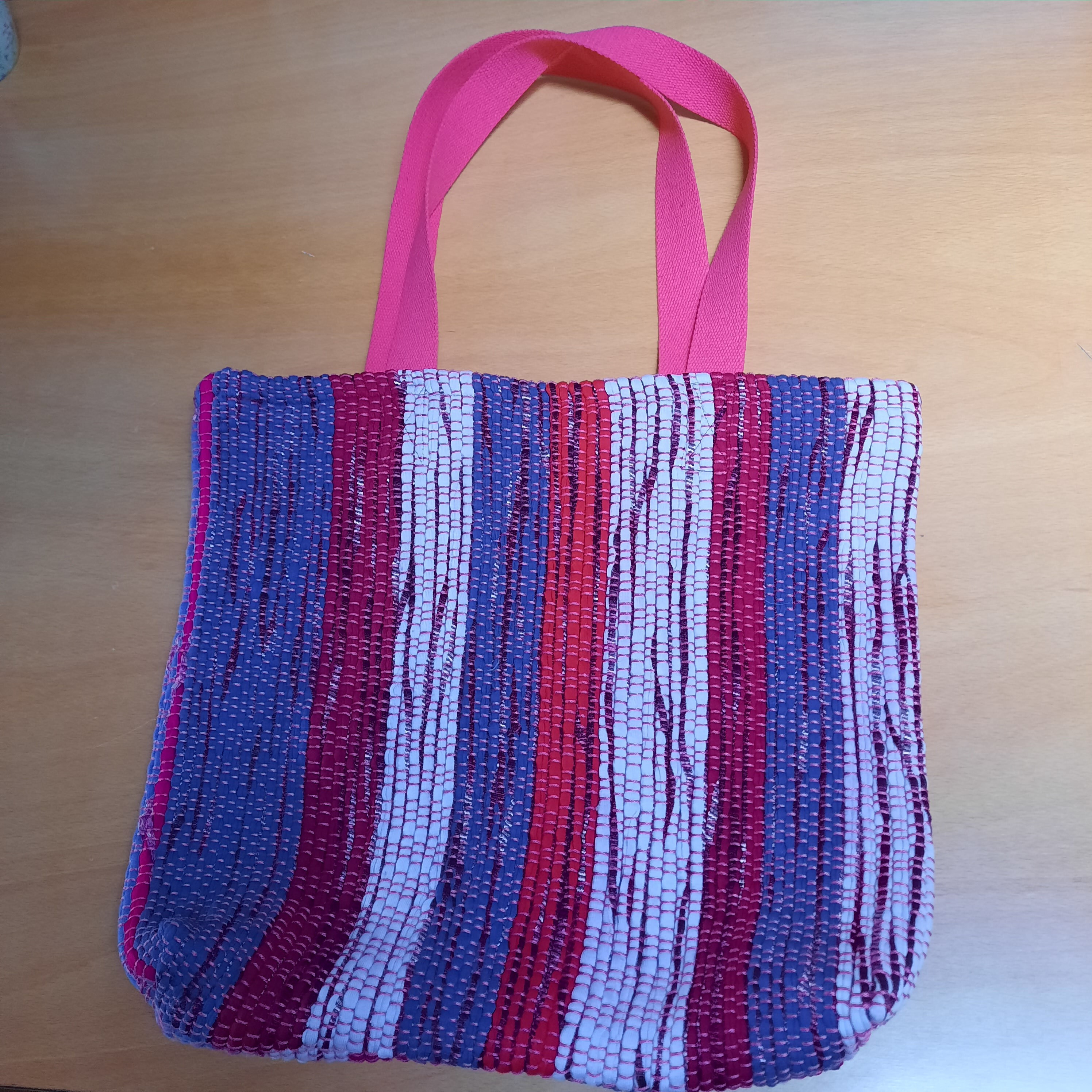 Dieser Webstuhl und dieser Stoff eignet sich sehr gut für Einsteiger:innen.